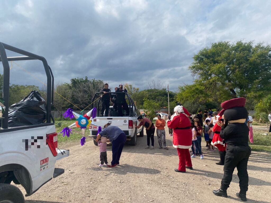 Niñas y niños que habitan en los Ejidos Santa Librada, Santa Clara y San Juan el Ranchito del municipio de Victoria recibieron la visita de Santa Claus y de los personajes característicos de la Secretaría de Seguridad Pública de Tamaulipas (SSPT), quienes además de regalos recibieron dulces y quebraron piñatas.